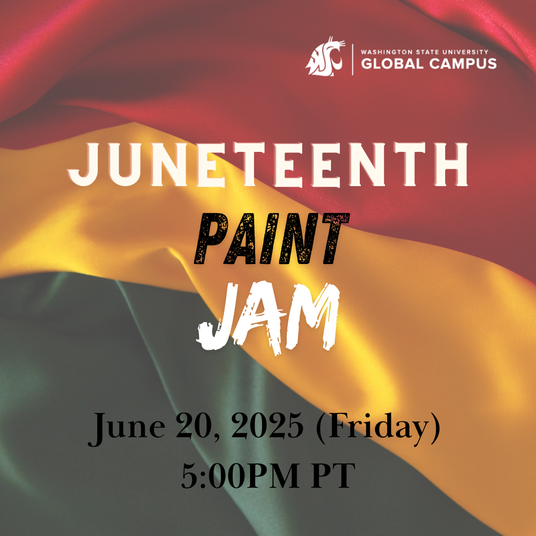 Join us for a Virtual Juneteenth Art Jam—a heartfelt celebration of freedom, resilience, and creative expression! Whether you paint, draw, snap photos, or design digitally, this is your canvas to honor the Juneteenth spirit. Explore themes of liberation and strength as you connect with fellow Global Campus students.